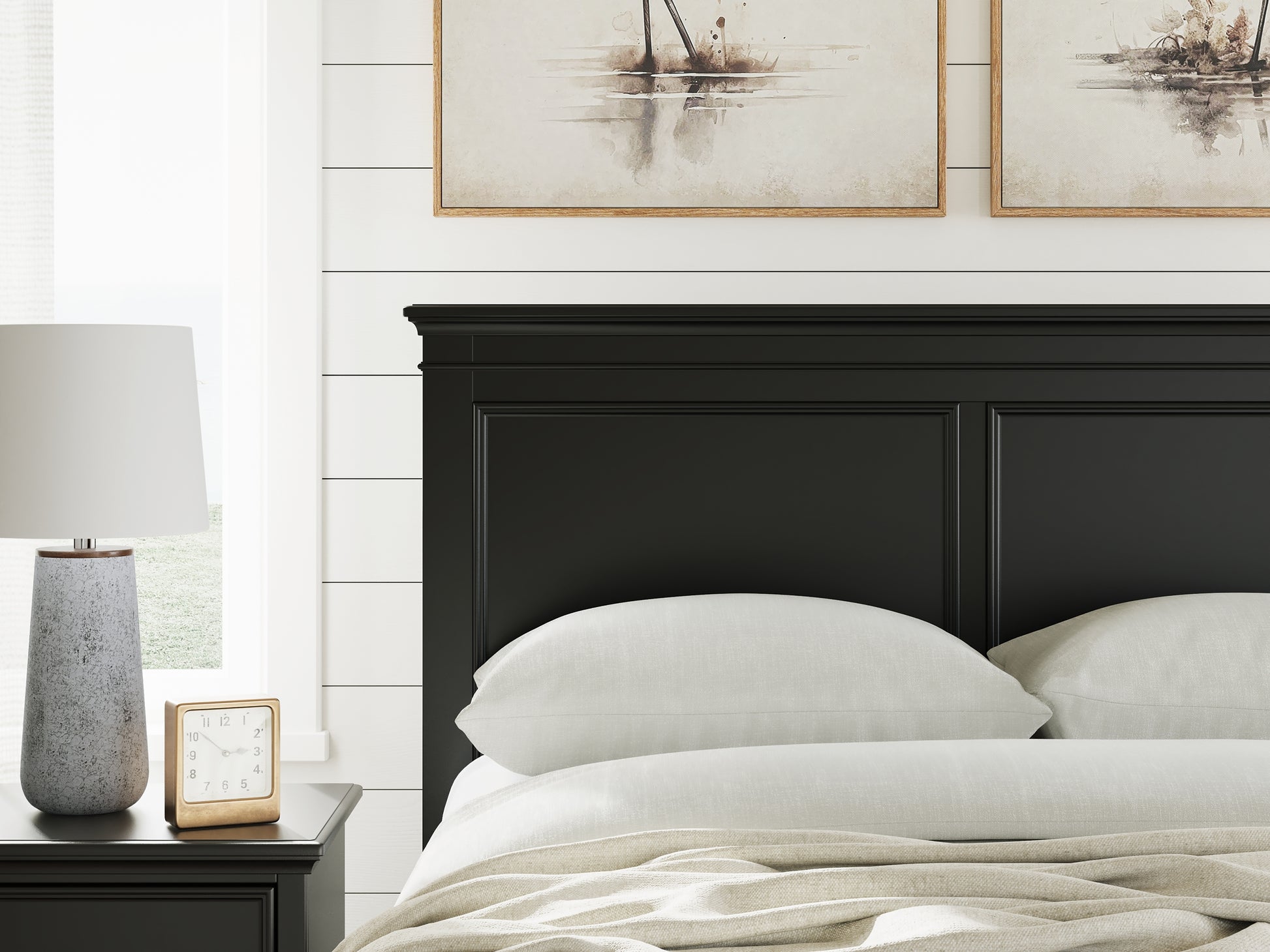 | Details | B687B22: Includes panel headboard, storage footboard with roll slats and rails , Made with hardwood solids, birch veneer and MDF substrate, Side rails feature laminated solid hardwood slat support rails (or LVL) with glued and screwed blocking for added strength, Black painted finish, Round metal knobs with satin nickel-tone finish, 2 smooth-gliding drawers in footboard, Tapered feet, Bed does not require additional foundation/box spring; accommodates most zero clearance adjustable bases with the addition of a bunkie board, Mattress available, sold separately, Assembly required, B687B1: Includes dresser and mirror, Made with hardwood solids, birch veneer and MDF substrate, Black painted finish, 7 smooth-gliding drawers with dovetail construction and ball-bearing side glides, Round metal drawer knobs with satin nickel-tone finish, Framed drawer fronts, Tapered feet, Mirror attaches to back of dresser, Assembly required, B687-92: Made with hardwood solids, birch veneer and MDF substrate, Black painted finish, 2 smooth-gliding drawers with dovetail construction and ball-bearing side glides, Round metal drawer knobs with satin nickel-tone finish, Framed drawer fronts, Tapered feet, | |