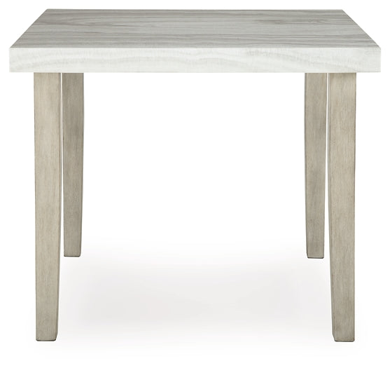 | Details | Made with solid hardwood, decorative paper laminate and MDF substrate, Tabletop with faux gray marble laminate, Decorative laminate replicates natural or man-made material surfaces with consistent color, pattern and texture, Tapered leg design, Seats up to 4, Stools sold separately, Assembly required | |