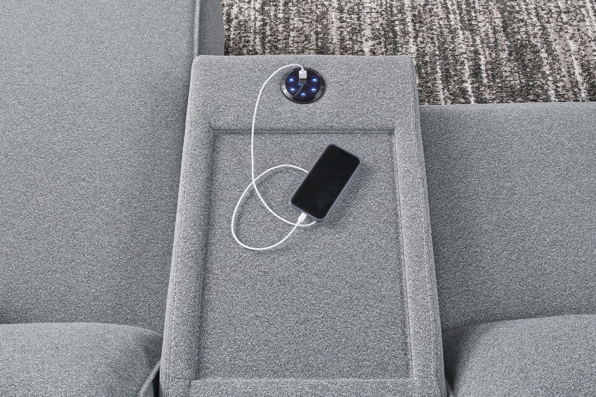 | Details | Includes 7 modular pieces: left-arm facing power reclining back chaise, power armless recliner, armless chair, 2 consoles with audio systems, wedge and right-arm facing power recliner, "Left-arm" and "right-arm" describe the position of the arm when you face the piece, Versatile modular pieces fit together in a variety of configurations, One-touch power control with adjustable positions, Easy View™ adjustable headrest and zero-draw USB port, Zero-draw technology only consumes power when the USB receptacle is in use, Corner-blocked frame with metal reinforced seat, Attached seat and back cushions; high-quality foam cushions wrapped in poly fiber, Polyester upholstery; Next-Gen Nuvella™ is a family-friendly fabric that is soft, easy to clean, stain-resistant and durable, Clean fabric with mild soap and water, let air dry; for stubborn stains, use a solution of 4 oz. bleach to 28 oz. water, Throw pillows with easy-to-remove zippered covers for machine washing; pillows with soft polyfill, Console with plexiglass top; built-in audio sound system with wireless connectivity; audio controls located on console; USB charging, Zero wall recliner design requires minimal space between wall and chair back, Power cord included; UL Listed | |