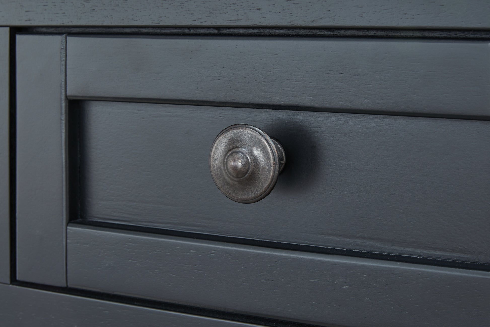 | Details | Made with hardwood solids, mango wood veneer and MDF substrates, Top with butcher block veneer pattern in rich brown wood tone finish, Base with warm satin black finish, Hardware with dark pewter-tone finish, 3 smooth-gliding drawers with fully finished interiors, dovetail construction and heavy-duty ball-bearing side glides, USB-A and USB-C charging ports, Power cord included; UL Listed, Assembly required | |